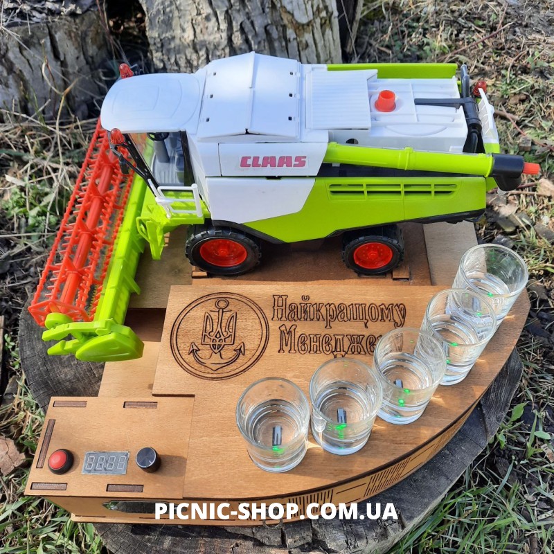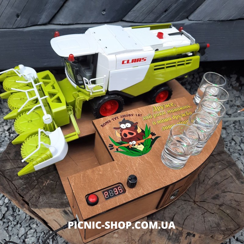 Сучасний наливатор “Комбайнер” розроблений та виготовлений нашими майстрами для автоматичного розливання напоїв по чарках. Виготовлений з якісних матеріалів. Всередині каркасу розміщений пристрій для автоматичного розливання напоїв. На корпусі розташоване табло та регулятор за допомогою якого регулюється об’єм в чарках.
